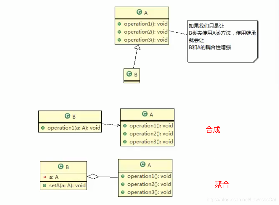 原则是尽量使用合成 / 聚合方式,而不是使用继承