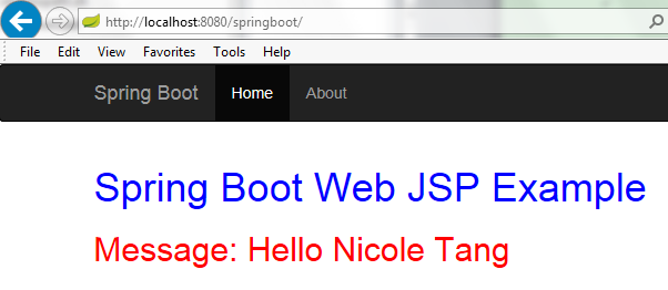现在点击 startup.bat,启动 Tomcat,访问:http://localhost:8080/springboot/ ,程序没有错误问题,应该会看到以下结果