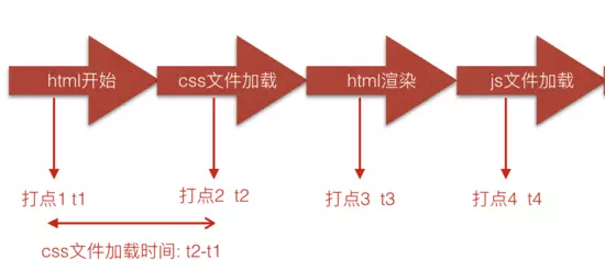 css 资源文件加载时间的计算,我们可以如上图所示:t2-t1 就是所有的 css 加载的时间。