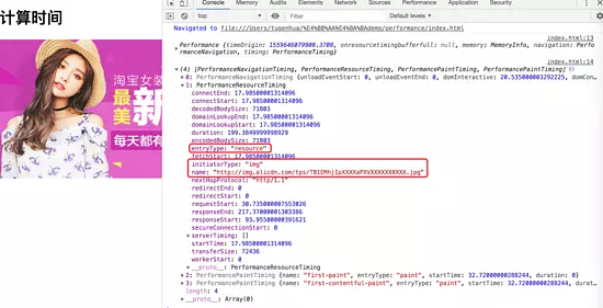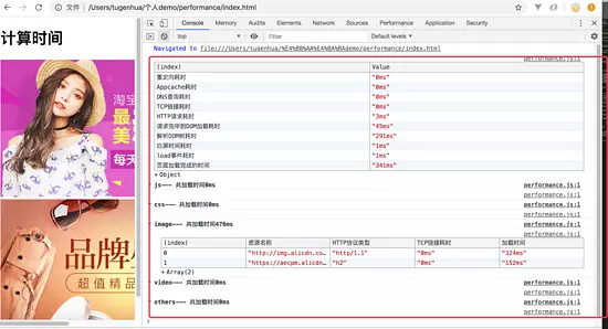 然后在浏览器下会打印如下 performance 基本信息如下: