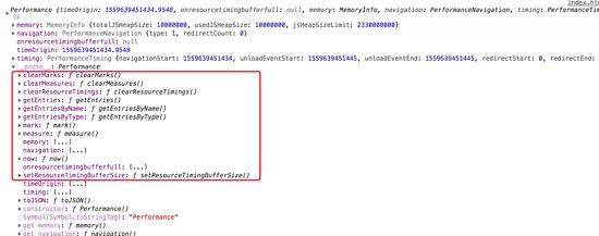- performance.onresourcetimingbufferfull: 如上截图也有这个属性的,该属性的含义是在一个回调函数。该回调函数会在浏览器的资源时间性能缓冲区满了的时候会执行的。