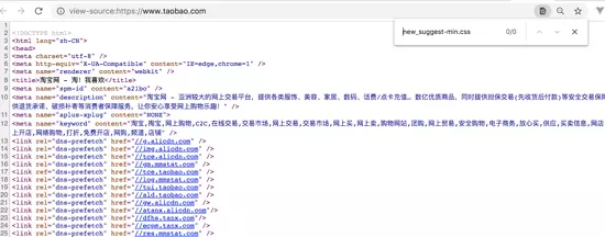 我们操作如上所示,打开淘宝官网源码查看如下所示:
