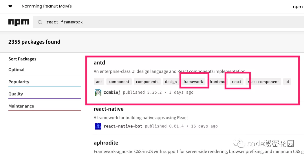 另外,你还可以去 https://www.npmjs.com/ 查询更多更详细的包信息。