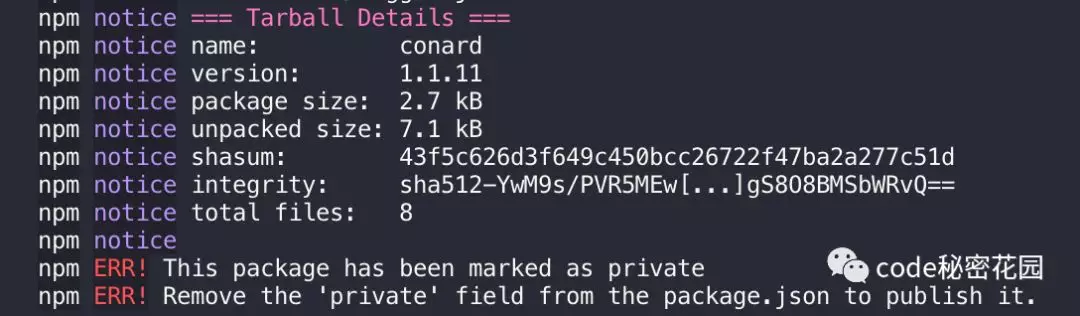 如果将 private 属性设置为 true,npm 将拒绝发布它,这是为了防止一个私有模块被无意间发布出去。