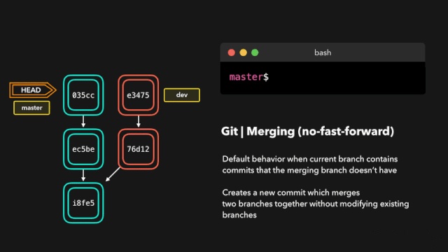 一般情况下,git 默认使用 ff 来处理分支合并,当成功合并时,也不会产生任何提交记录,且当旧的分支被移除后,其分支信息也会被移除